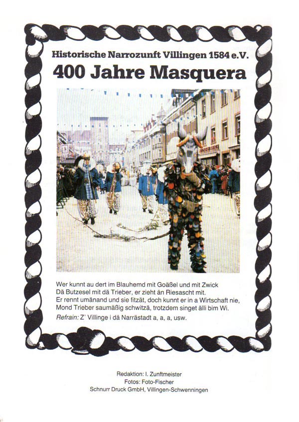 1974 erschien das vom Narrenredakteur und späteren Zunftmeister Christian Huonker initiierte Zunftblättle zum ersten Mal. Es sollte den Kontakt zu Mitgliedern intensivieren. Aber gleichzeitig über das Geschehen vor und während der Fasnet informieren.