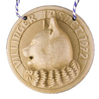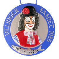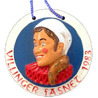 Die Geschichte der Villinger Fasnetabzeichen, oder besser gesagt Umzugsabzeichen begann im Jahre 1954 und dauert bis heute an. Und wie sich die Gesellschaft veränderte, so veränderte sich die Fasnet und damit auch die Umzugsabzeichen. Begann es im 1954 noch mit einem kleinen Holzdäfele (3,5 x 3,2), fand es im Jahr 2003 seinen "Höhepunkt" (9,2 x 9,2). So wie die Fasnet im Laufe der Zeit auch immer größer geworden ist. Wenn auch die Motive immer größer, meiner Meinung aber nicht besser wurden (Ich meine damit die Ausführung), so ist aber festzuhalten, dass die Bemalung zum Teil sehr gut geworden ist. Diese Abzeichen erkennt man an den Kürzel "J.K. bzw. K.J." oder "M". Ob die Abzeichen besser geworden ist, soll jeder für sich selbst entscheiden.